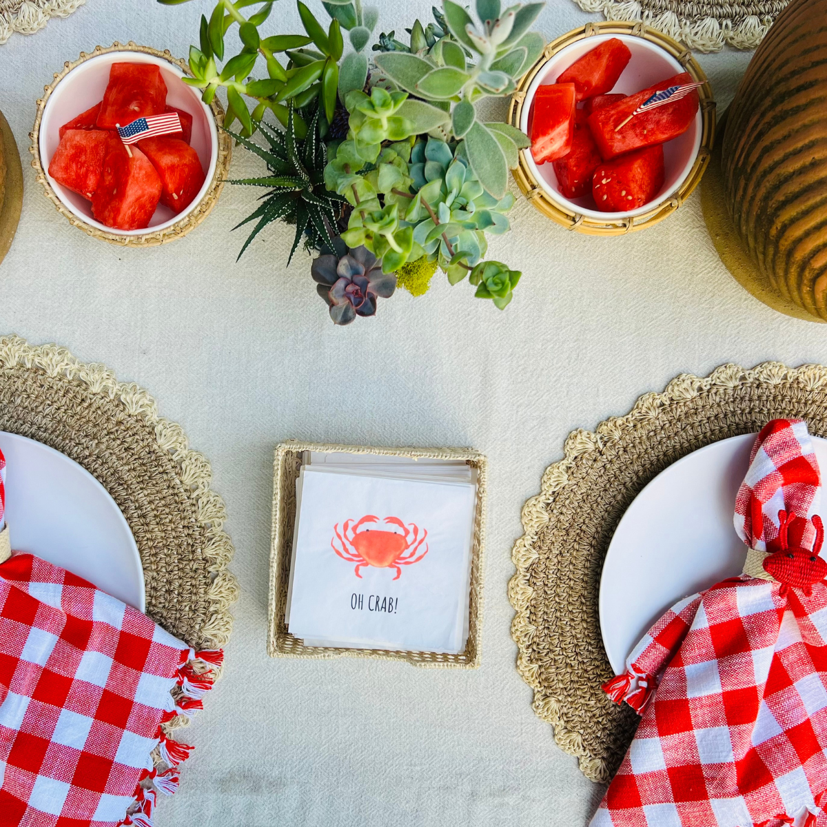 Holy crab! We love these sassy & super cute cocktail napkins. A perfect accompaniment for your bar, poolside, day on the beach, or gift for someone with a home on the coast, we love that they balance sweet with sass so well. Gift a pack with a bottle of wine as a fun house-warming, birthday, or hostess gift, or simply enjoy at home.