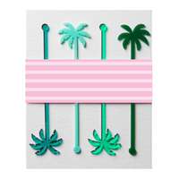- Each Palm Tree Acrylic Drink Stirrer Set includes the following stirrers: a Teal Transparent Palm Tree Stirrer, a Turquoise Palm Tree Stirrer, a Mint Palm Tree Stirrer, and a Green Palm Tree Stirrer