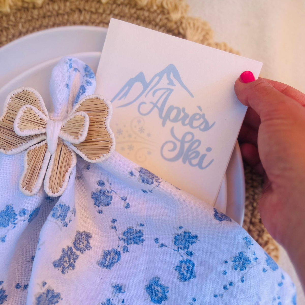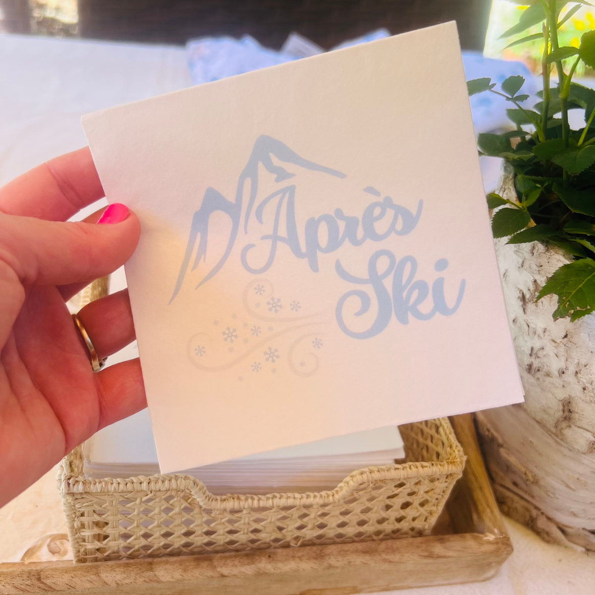 Flurries, fireplaces, and festive cocktails - yes, please! Perfect for hot toddies, mulled wine, or martinis by the fire, our adorable "Après Ski" cocktail napkins make every sip feel like a celebration.