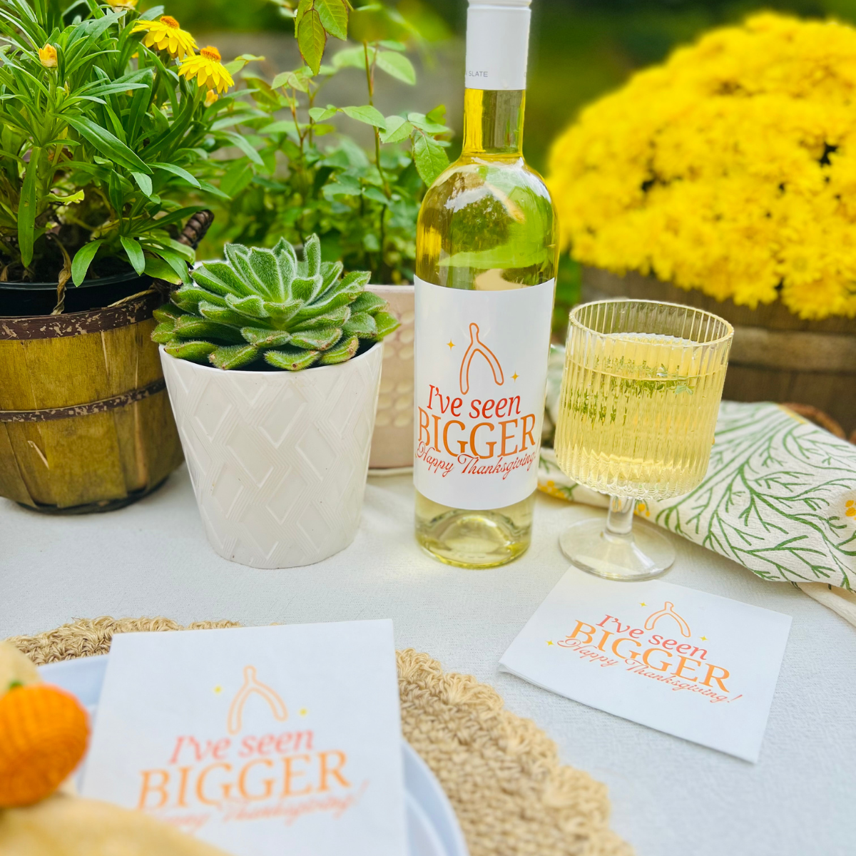 Forget politics - this year's Thanksgiving debate is going to be all about the wishbone! The ultimate recipe for family laughs, our hilarious "I've Seen Bigger" Thanksgiving Wine Label will definitely make people smile.