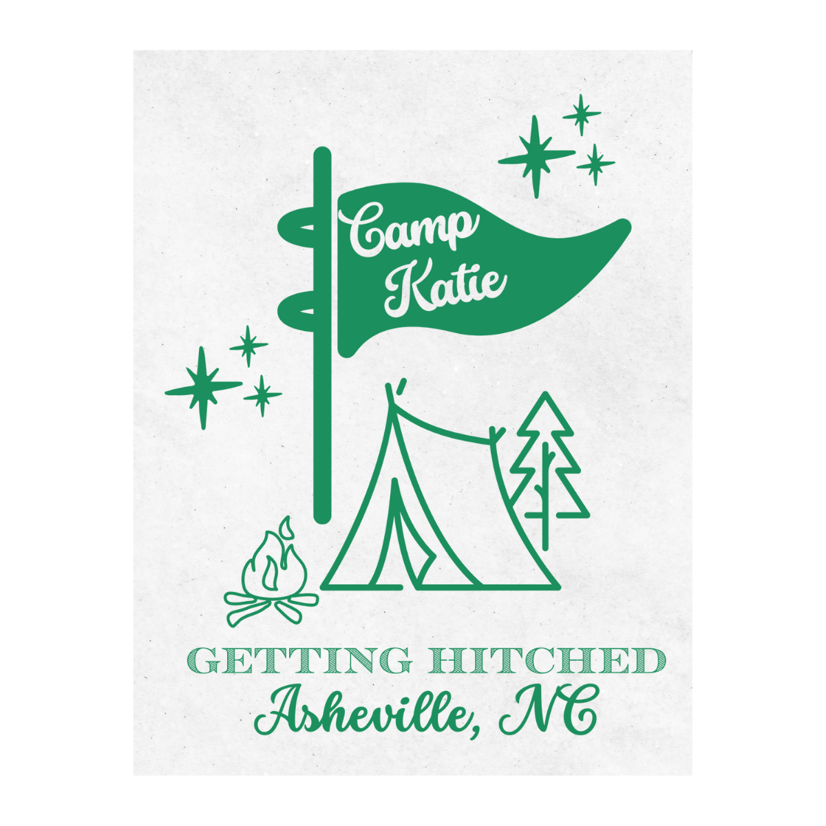 Light the fire and grab your s'mores - it's time to wine down at Camp Bach. Featuring a charming camp flag surrounded by sparkling stars, these adorable wine labels are the perfect way to set the scene for the bride's adventure-filled weekend.
